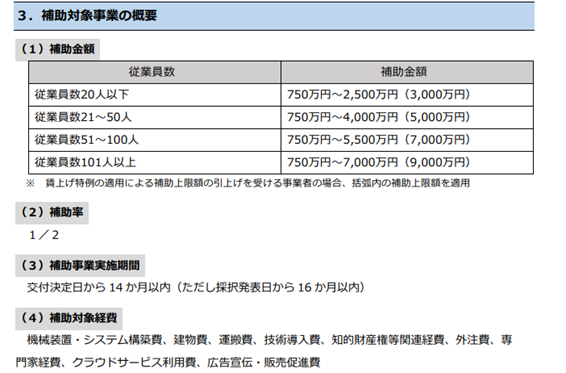 この補助金の目的は、「中小企業等が行う、既存事業と異なる事業への前向きな挑戦であって、新市場・高付加価値事業への進出を後押しすることで、中小企業等が企業規模の拡大・付加価値向上を通じた生産性向上を図り、賃上げにつなげていくこと」とされています。